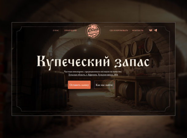 Современная пивоварня с традиционным взглядом на качество. Создали эффектный сайт, отражающий продукцию, а также принципы и преимущества производства